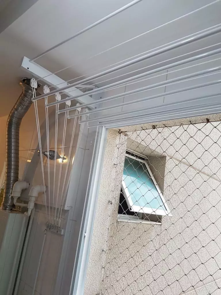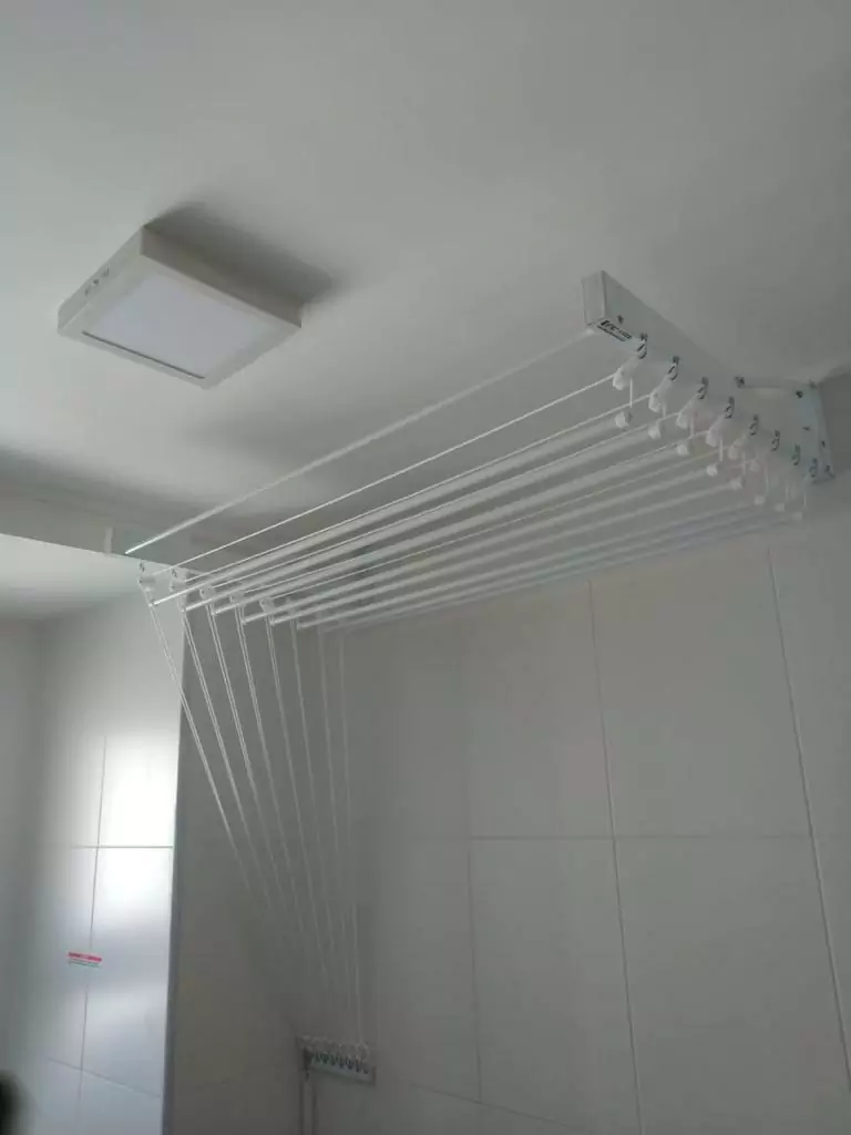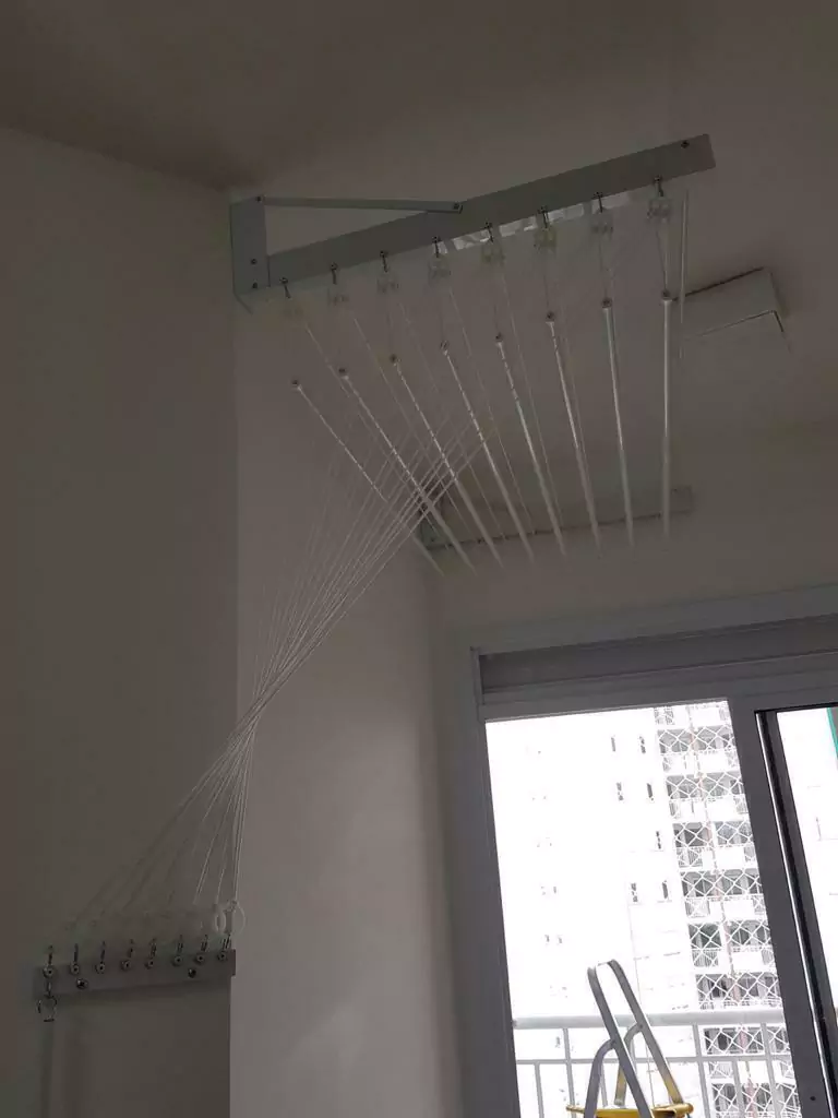 Ideal para quem não pode realizar perfurações no teto. Este varal é perfeitamente adaptável a paredes com rebaixo de gesso, forro de PVC ou madeira.